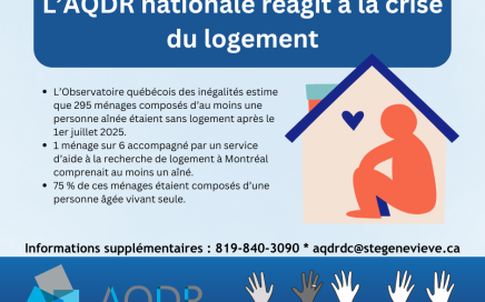 L’AQDR s’associe à l’Observatoire québécois des inégalités, en la personne du chercheur Geoffroy Boucher, pour documenter les effets de la crise du logement chez les personnes aînées. De plus en […]