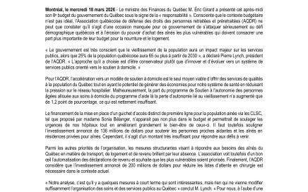 Un budget conservateur qui passe à côté du défi démographique québécois Montréal, le mercredi 18 mars 2026 – Le ministre des Finances du Québec M. Éric Girard a présenté cet […]