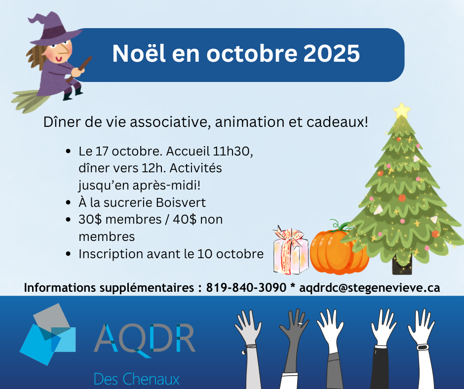 Inscription obligatoire avant le 10 octobre à 819-840-3090 / aqdrdc@stegenevieve.ca